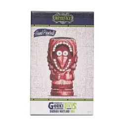 Convention Exclusive! Put on your scary face and grab “The Handbook for the Recently Deceased.” As you read through the instructions for your next move in the afterlife, enjoy a beverage with the “jaw dropping” scary-face woman. This creative and colorful Beetlejuice Barbara Maitland 19 oz. Geeki Tikis Mug – Convention Exclusive combines the popular character with the unique stylization seen in traditional Tiki culture and features a bright-red finish with white accents. It measures approximately 7-inches tall x 4 1/2-inches long x 3 3/4-inches wide and comes in closed box. This limited edition ceramic mug is top-shelf dishwasher and microwave safe. Order yours while supplies last! Ages 14 and up.