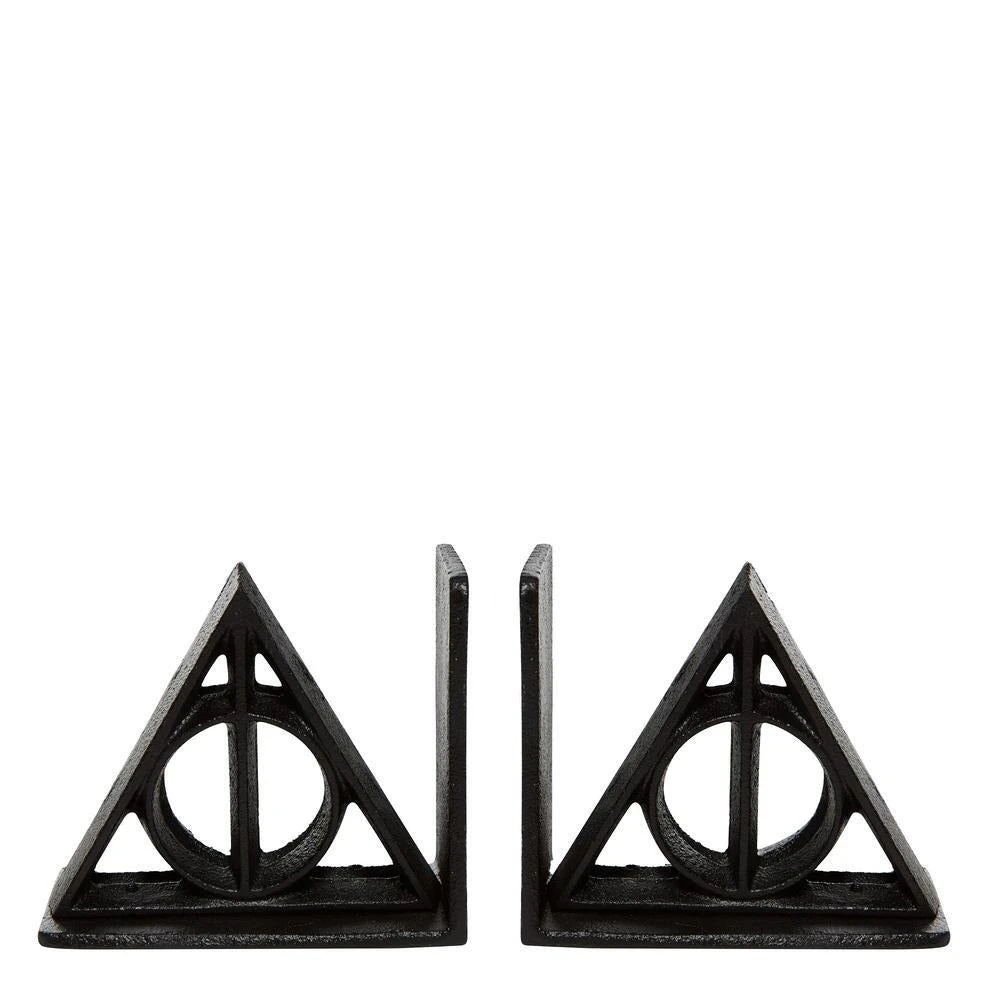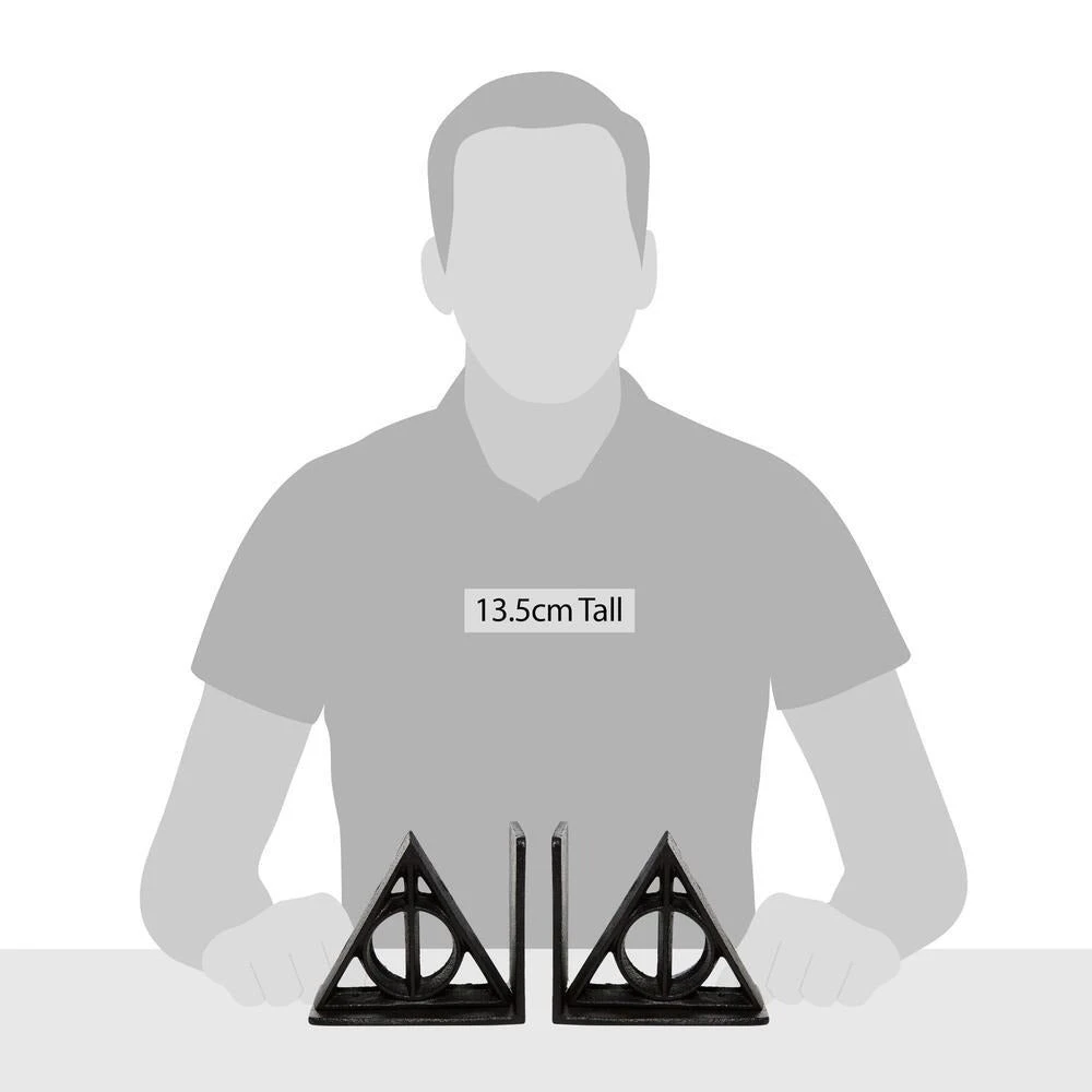 Keep your Harry Potter Collection together with these matching Deathly Hallows Cast Iron sturdy bookends. The unique and magical symbol portrays the three objects needed to defeat death – the elder wand, invisibility cloak, and resurrection stone.