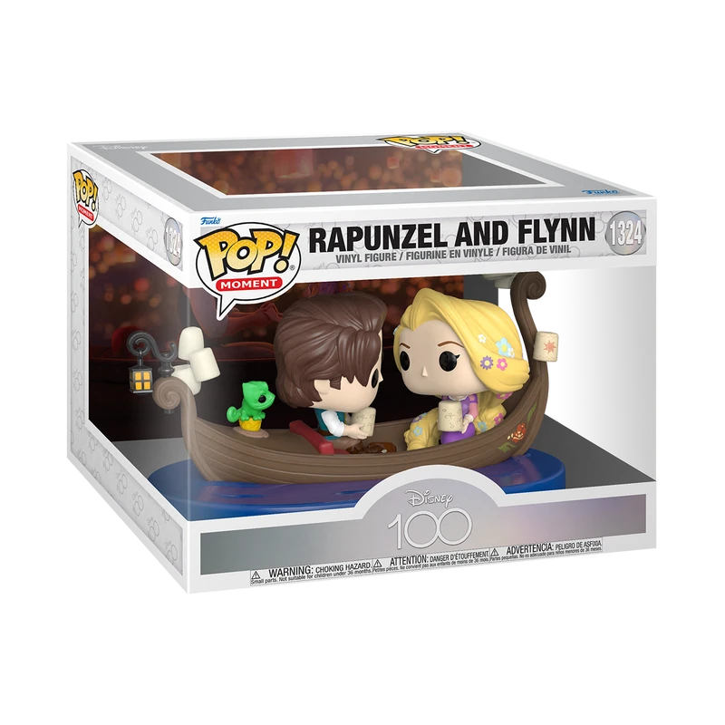 Watch the floating lanterns gleam with Rapunzel and Flynn as they explore the new and exciting world outside of the tower. Celebrate Disney’s 100th Anniversary with this Pop! Movie Moment featuring Pop! Rapunzel and Pop! Flynn in Gondola. Pop! Pascal has come along for the ride and now the trio is ready to bring the lights home to your Disney collection. Vinyl figure is approximately 5.3-inches tall.