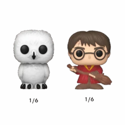 Diminuendo! Your favorite Harry Potter Pops! have been shrunk into Bitty Pops! Expand your Wizarding World collection with this assortment of Bitty Pop! figures featuring your most beloved Harry Potter characters! This 4-pack includes Bitty Pop! Hermione Granger, Bitty Pop! Hermione Granger, and Bitty Pop! Ron Weasley, and a mystery Bitty Pop! figure. The possible mystery Bitty Pops! are Hyper Rare (1/6) Harry Potter (Quidditch), Hyper Rare (1/6) Hedwig, Rare (1/3) Fawkes, and Rare (1/3) Severus Snape.