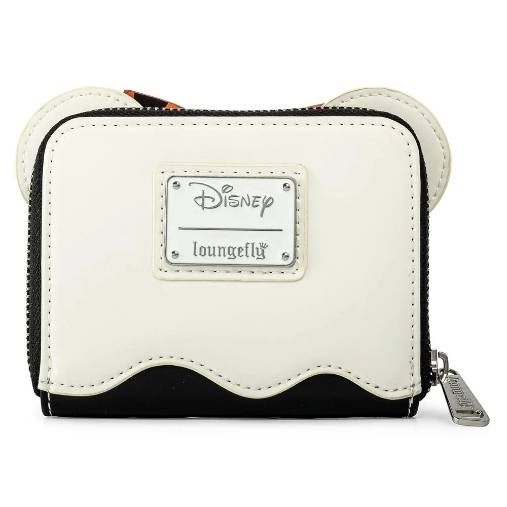 It’s a not so scary design, for an oh so sweet season! The Loungefly Disney Minnie Mouse Ghost Glow in the Dark Cosplay Zip Around Wallet. Oh yeah, you read that correctly. This spectacularly spooky wallet glows in the dark and is the prefect accessory to any Disney Halloween outfit. Minnie Mouse is masquerading as a ghost and is wearing a black and orange polka-dot bow.