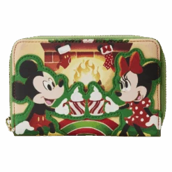 Pour a cup of hot cocoa and join Mickey Mouse and Minnie Mouse by the fire. Celebrate the warmth of the season with this Loungefly Disney Mickey Mouse and Minnie Mouse Fireplace with Cocoa Zip Around Wallet. The fireplace reveals a warm and toasty fire that’s just perfect for Mickey and Minnie Mouse, who raise their whip-cream-filled hot cocoa cups in a toast. Holly decorates the mantel of the fireplace, and stockings await Santa’s arrival. Applique details bring the characters to life. On the back, Pluto has a wish list for Santa. Inside, you’ll find 4 slots for holding cards and 1 clear slot for your ID. It’s the perfect accessory for dashing off to holiday-themed occasions—or for bringing a merry and bright spirit of the season to everyday outings.