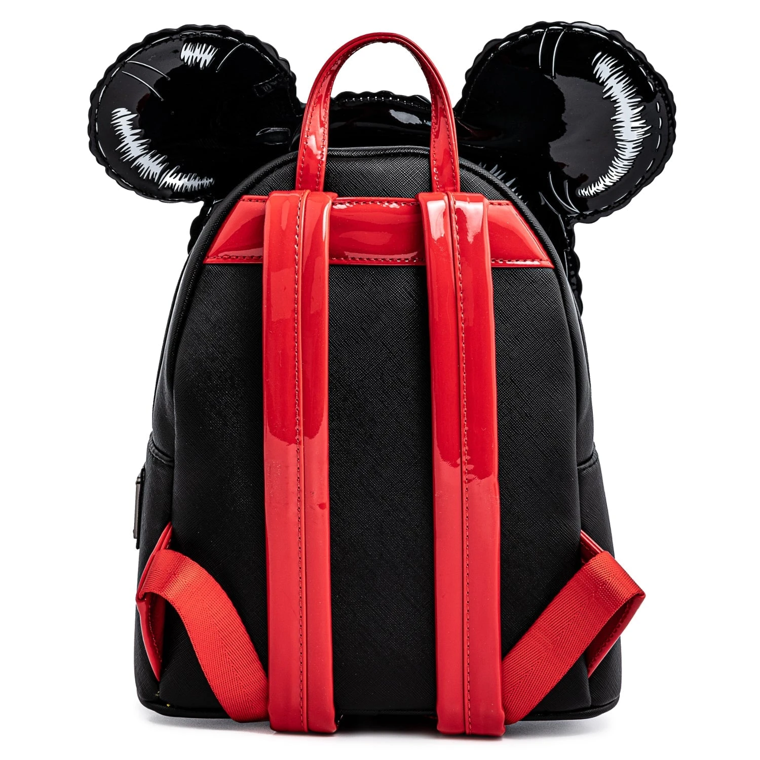 The Disney Mickey & Minnie Mouse Balloon Cosplay Mini Backpack is made of vegan leather (polyurethane). Bag has adjustable shoulder straps, sturdy metal hardware, and features: padded applique, and debossed details. Take note of the coordinating design of the inside lining fabric.