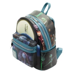 This wistfully romantic accessory is simply meant to be! The Loungefly Nightmare Before Christmas Final Frame Mini Backpack brings to life iconic images from Tim Burton’s The Nightmare Before Christmas. On the front zipper pocket, Sally leans against a stone wall as she ponders her love of Jack. An enamel zipper charm of Zero the ghost dog accompanies the scene. Up above, Jack and Sally hold hands on Spiral Hill under a full moon. Turn the bag around to find Jack Skellington striking a pose on the bag’s side panels and pockets, while Oogie Boogie appears with a menacing grin on the bag’s back. This mini backpack adds frightful fun to any outfit and is the perfect accessory for fans looking to keep one of their favorite animated movies close.