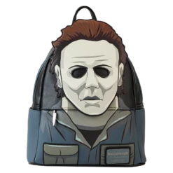 Cue the haunting theme song and look sharp! Make an entrance with our Loungefly Michael Myers Halloween Cosplay Mini Backpack. Michael Myers’ eerie, masked face comes to life in applique detail, rising up over the top edge of the backpack. In the dark, the entire face glows! The front zipped pocket features applique shirt pockets and a collar. A metal zipper charm, in the shape of a knife, is a pointed nod to the legacy of this slasher film. On the back, you’ll find the famous house setting for this classic Halloween movie, along with the words, “The Night He Came Home”—and they glow in the dark! Pack just what you need to enjoy a night of fun watching scary movies at friends’ houses—or simply visit your favorite haunts in style.