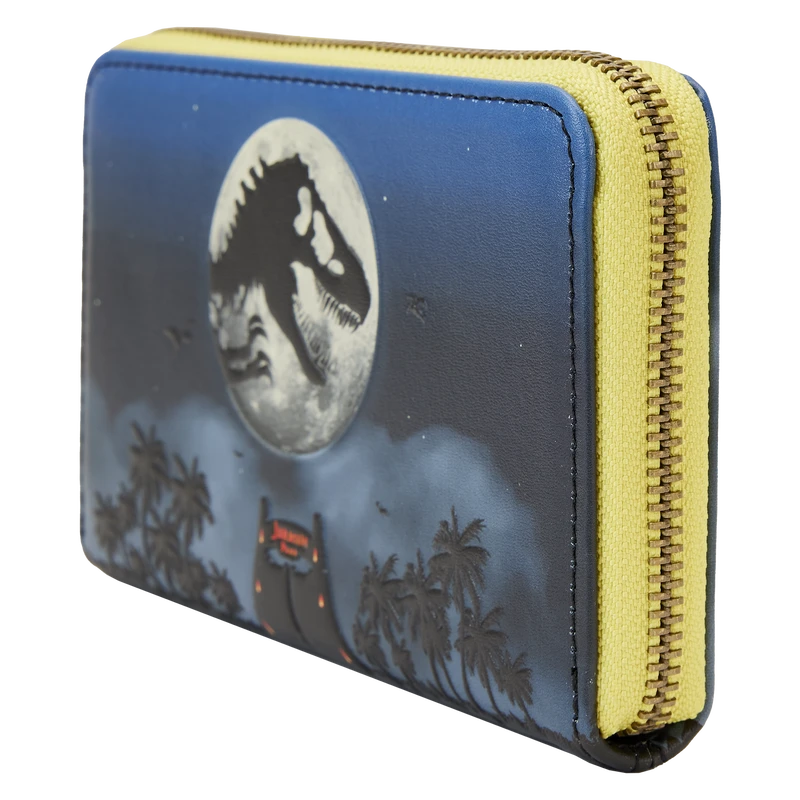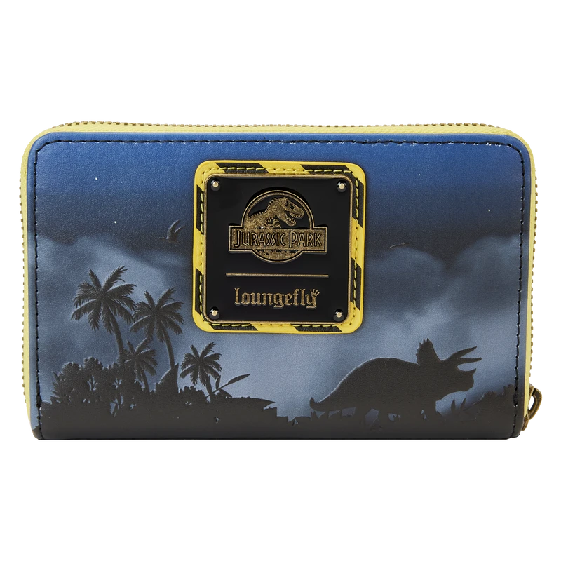 Welcome to Jurassic Park! Celebrate a larger-than-life adventure with the Loungefly Jurassic Park 30th Anniversary Dino Moon Glow Zip Around Wallet. Journey to a land frozen in time as you enter the gates located on the wallet’s front. Up above, an ominous silhouette appears on a glow-in-the-dark moon. Turn the wallet around to see a triceratops wander through a land of lush palm trees. Perfect for tourists on the go, this accessory will keep your essentials safe as you start your next expedition.