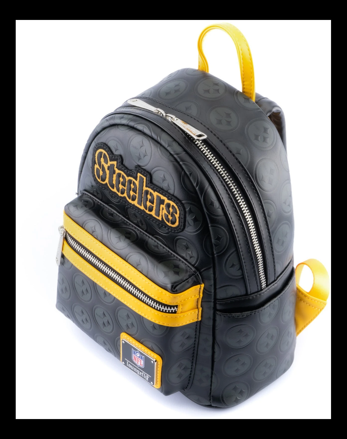 Represent your favorite team whether you’re on your way to practice, a game, or just out running errands with the National Football League Loungefly accessories! This NFL Pittsburgh Steelers Logo Mini Backpack is a touchdown for any Steelers fan. This black backpack is covered in the team’s logo and features an embroidered patch of the team name on the front. It’s perfect for carrying everything you need to and from games.