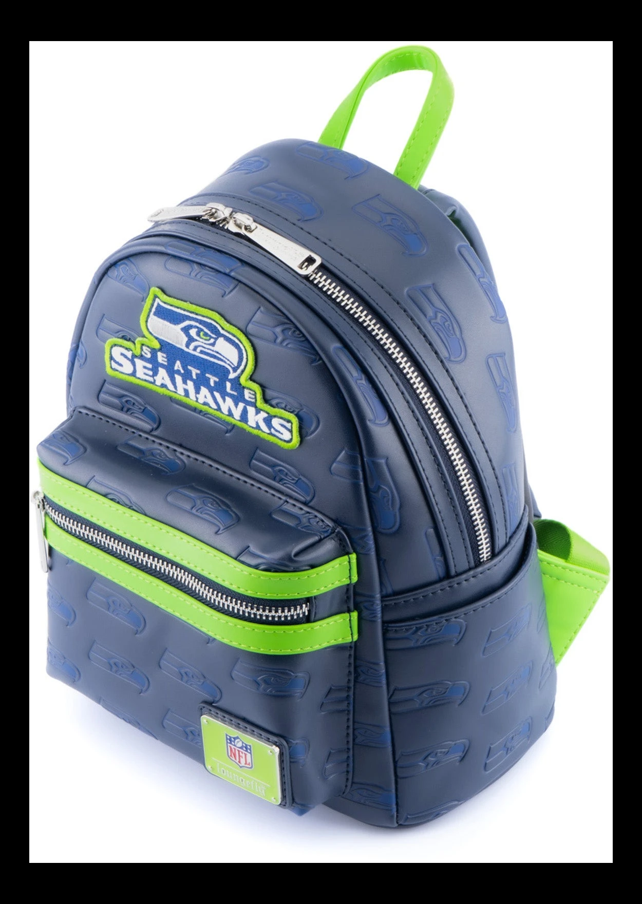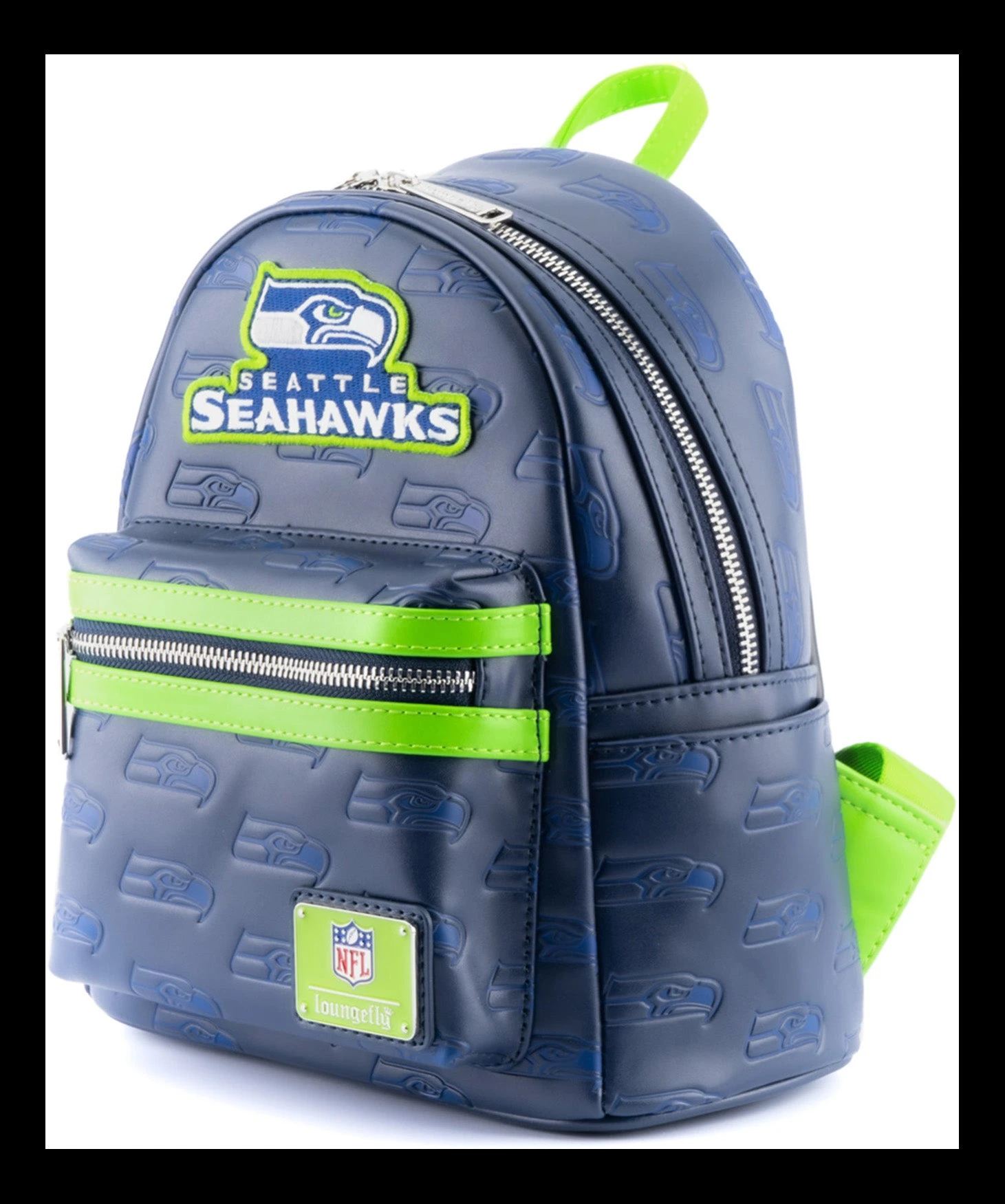 Represent your favorite team whether you’re on your way to practice, a game, or just out running errands with the National Football League Loungefly accessories! This NFL Seattle Seahawks Logo Mini Backpack is a touchdown for any Seahawks fan. This dark blue backpack is covered in the team’s logo and features an embroidered patch of the team name on the front. It’s perfect for carrying everything you need to and from games.