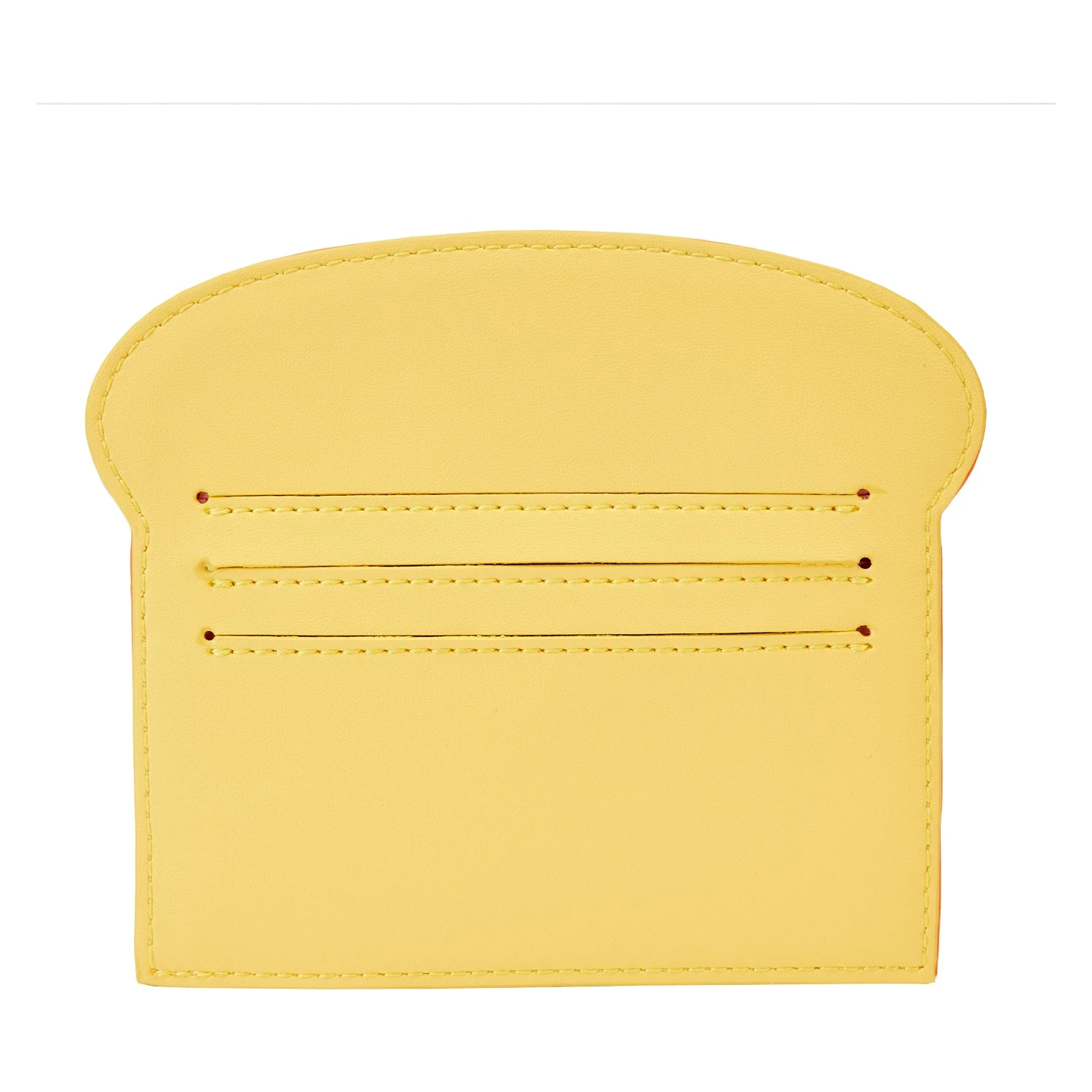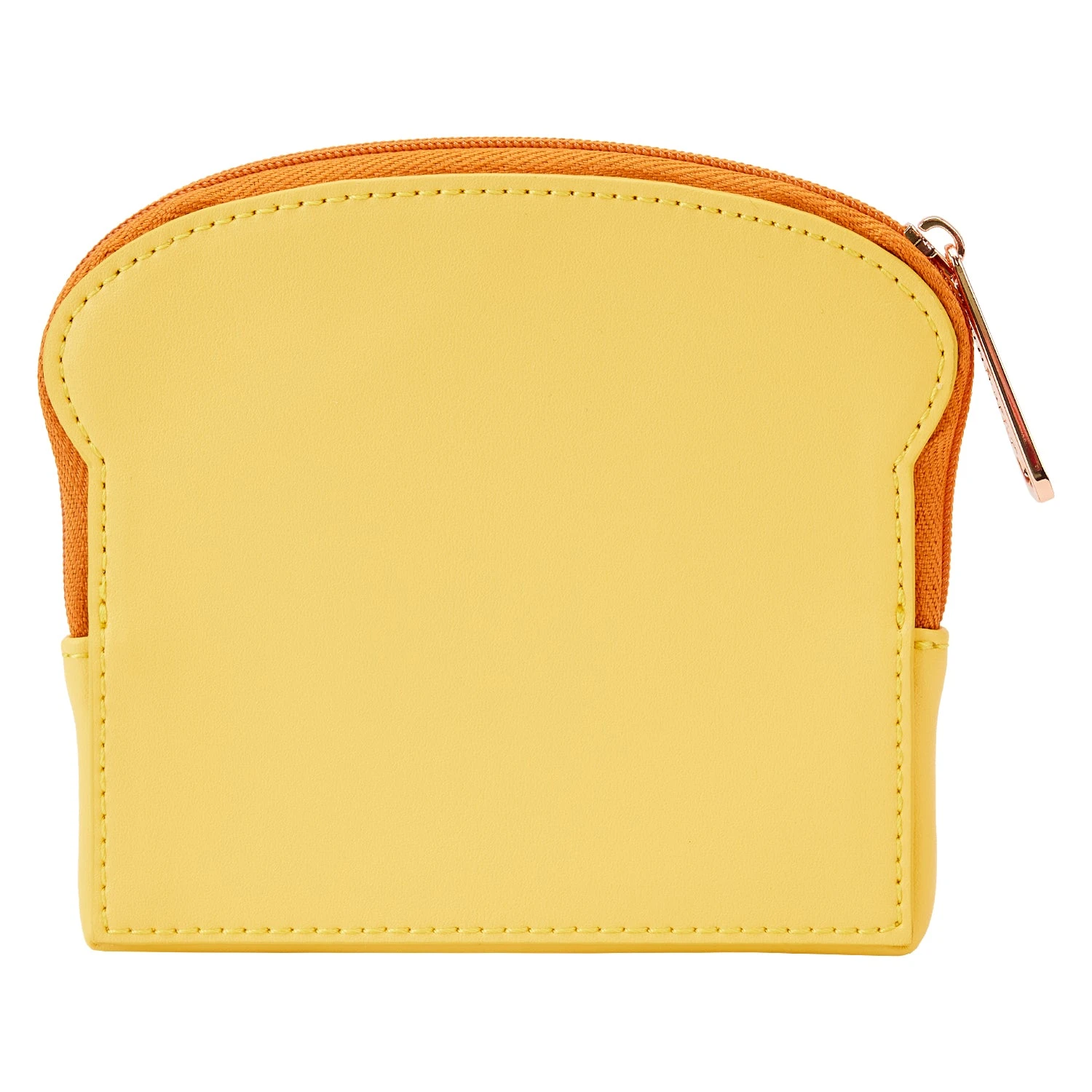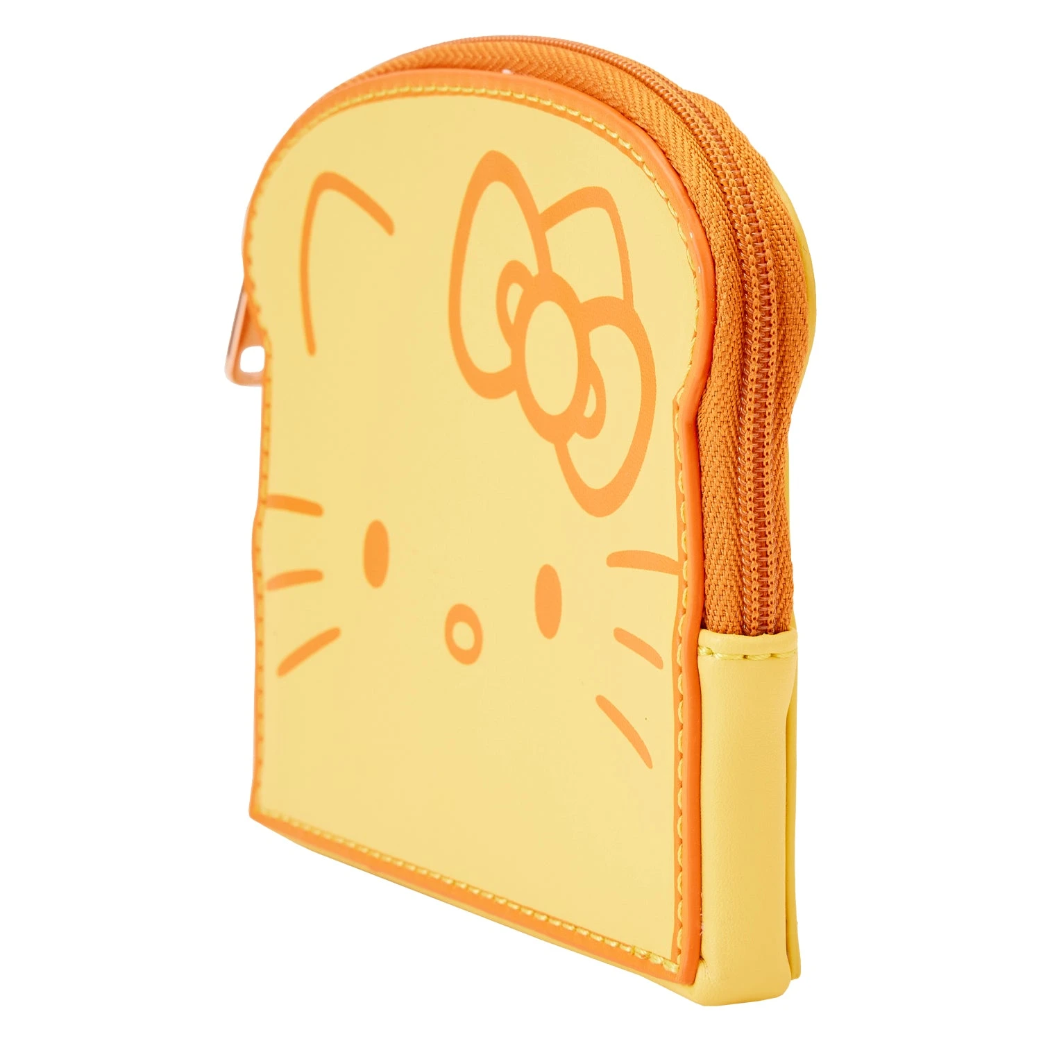 The Loungefly Hello Kitty Breakfast Toaster Crossbody Bag, coin bag, and card holder are made of vegan leather (polyurethane). Bag has adjustable (detachable) shoulder strap and rose gold hardware. Card holder includes three slots for holding cards or ID. Additional features include applique, debossed, and printed details. Take note of the coordinating inside lining.