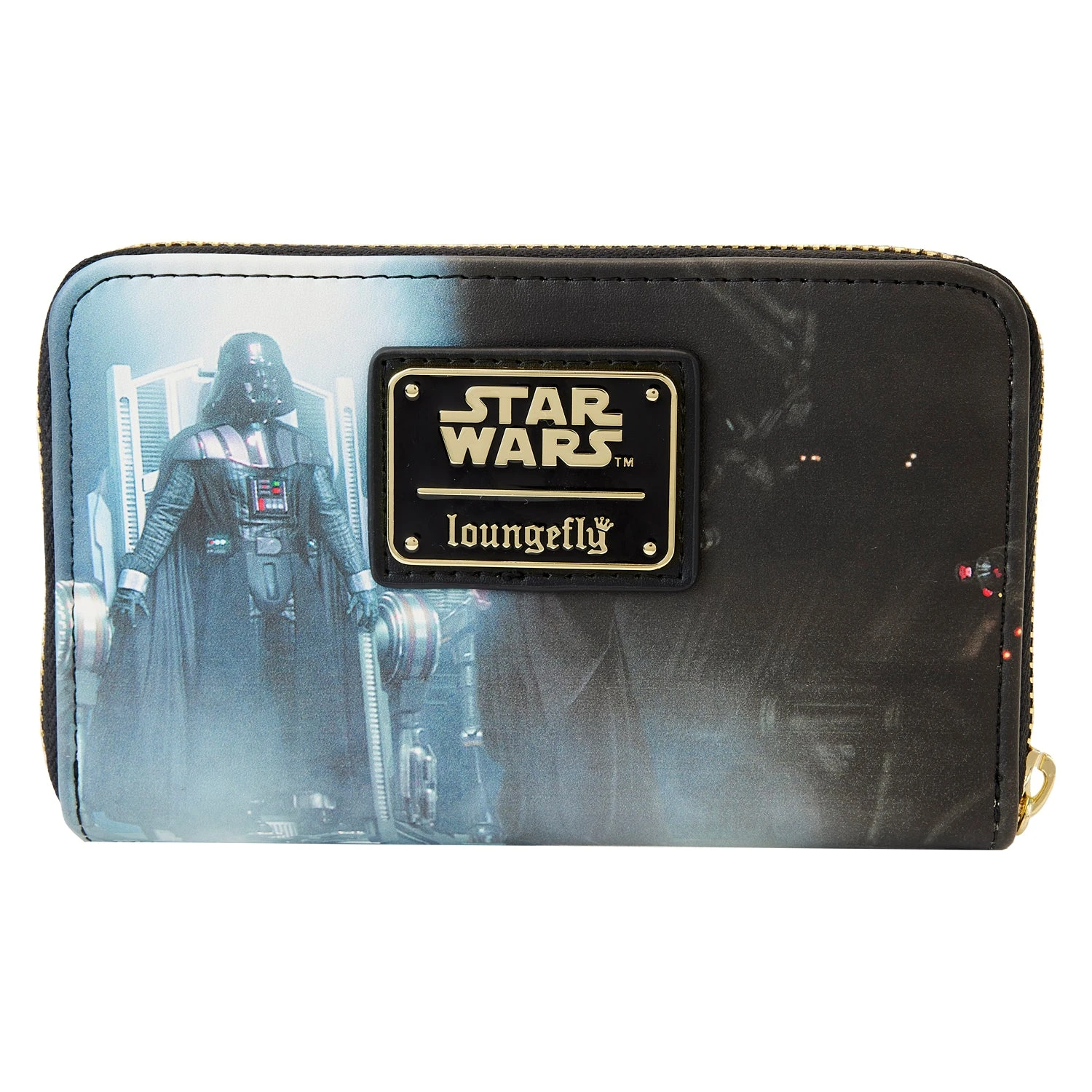 Every saga has an end. The Loungefly Star Wars: Episode III – Revenge of the Sith Scene Zip Around Wallet features cinematic moments from the legendary finale of the prequel trilogy. On the front, a commander receives a deathly order. On the back, Darth Vader™ consults his master. With four slots for holding cards and a clear slot for ID, this accessory makes a stellar addition to any Star Wars™ collection.
