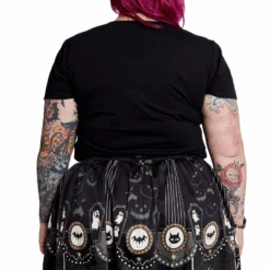 In our town of Halloween, haunt couture is always top of mind. Dress for the occasion with the Stitch Shoppe by Loungefly Nightmare Before Christmas “Kelly” Top. On the front, Jack Skellington’s bowtie accompanies a skull motif embroidered along the neckline. As daylight fades, you’ll see the stitched details glow in the dark. This versatile shirt is a trendy option for any time of day and can be paired with various skirts or pants to create the perfect Disney-themed outfit.