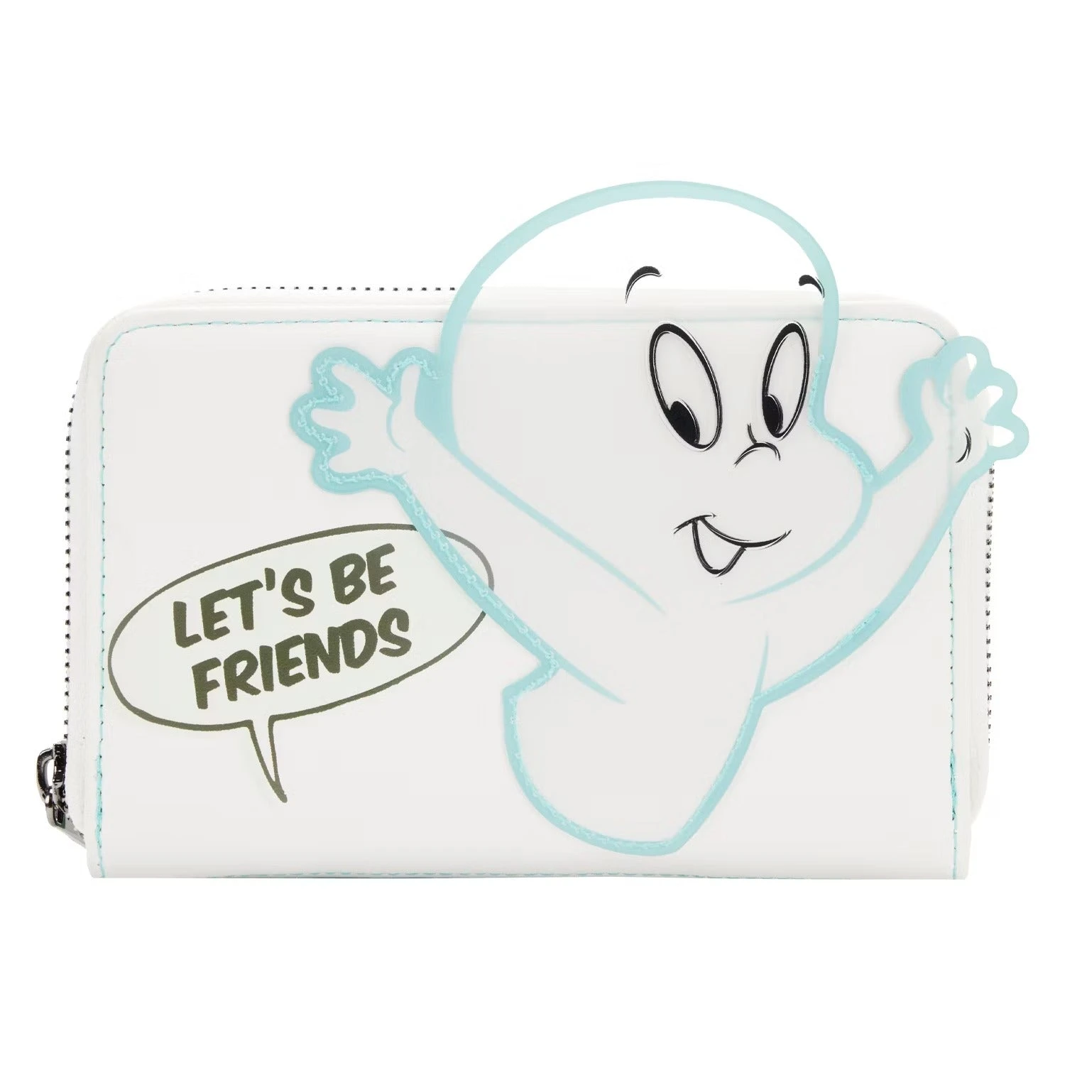 Umm…Boo? Casper the Friendly Ghost doesn’t want to make trouble. He wants to make friends. Join this spirited adventurer with the Loungefly Universal Casper the Friendly Ghost Let’s Be Friends Zip Around Wallet. Keep your valuables safe while touring Whipstaff Manor—or visiting your daily haunts. On the front, Casper comes to life in applique detail, his head and arms sticking out. Frosted PVC material makes him practically see-through, and next to him, you’ll find a speech bubble quoting Casper, who says, “Let’s be friends.” On the back, Stretch, Stinkie, and Fatso take flight. In the dark, Casper, his speech bubble, the three ghosts, and the Loungefly label all glow! Open up the wallet, and you’ll find 4 slots for carrying cards and 1 clear slot for holding your ID. A die-cut shape of Casper adds a happy, haunted touch. It’s the perfect accessory for a ghost tour—or for turning any trip into a frightfully fun outing.